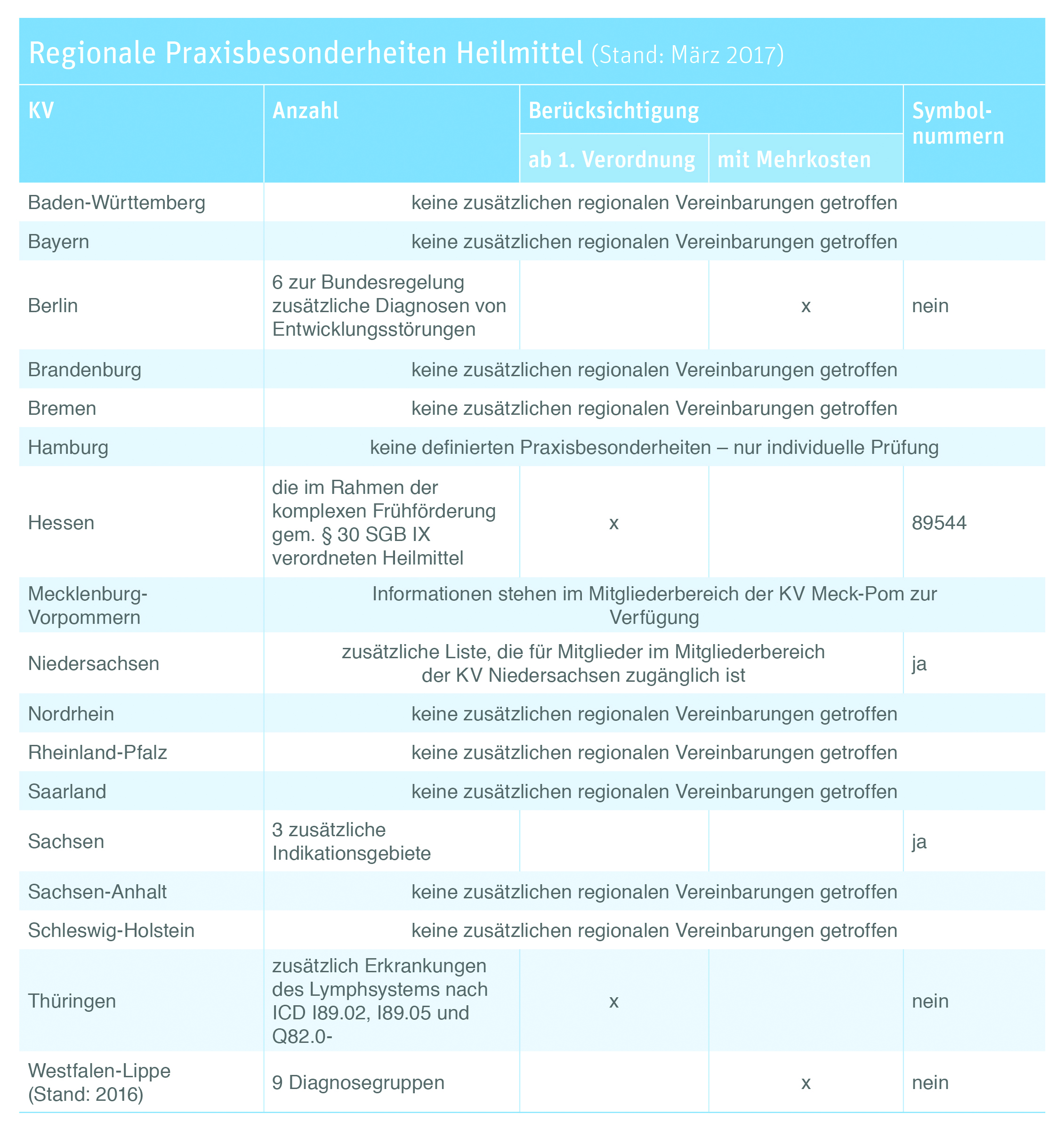 Überblick zu bundesweiten Praxisbesonderheiten